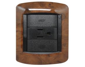 TOMACORRIENTE DOBLE DE CONEXIÓN A TIERRA CON PLACA Y TORNILLOS 15AMP, 125V COLOR MADERA (10-8)