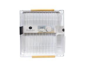 ESCURRIDOR PARA PLATOS DE METAL 16.3"X12"X5.5" CON MANGO DE MADERA, COLOR BLANCO