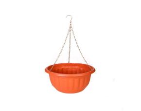 MACETERO 20X12CM REDONDO PLASTICO COLGANTE C/CADENA TERRACOTA DISEÑO RELIEVE