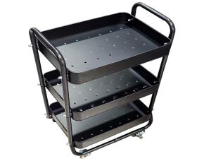 CARRITO 3 NIVELES C/AGARRADERA Y RODOS, 17X13 3/8X33 1/2" (43X34X85CM) TUBO 16MM, NEGRO