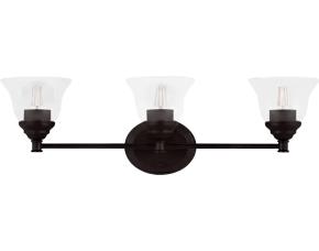 LAMPARA D/TOCADOR D/TRANSICION CAFE OSCURO C/2LUCES 14.25PULG C/PANTALLA D/VIDRIO TRANSPARENTE