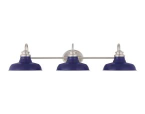 LAMPARA D/TOCADOR ESTILO GRANJA C/PANTALLAS D/METAL AZUL OSCURO C/BASE NIQUEL C/3LUCES DE 29PULG. HA