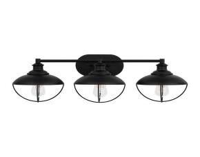 LAMPARA D/TOCADOR DE BAÑO C/3LUCES DE 24PULG. NEGRO MATE C/PANTALLA DE VIDRIO TRANSPARENTE MACKENZIE