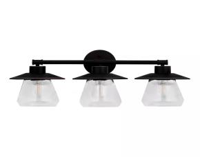 LAMPARA D/TOCADOR D/BAÑO NEGRA C/COPA D/VIDRIO TRANSPARENTE C/3LUCES 24PULG ROCKWOOD
