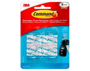 PK.20 MINI GANCHOS PLAST.TRANSP.3M C/ADHESIVO
