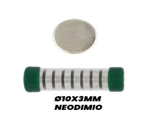 TUBO 10 IMAN Ø10X3MM/1.10LBS FUERZA, NEODIMIO REDONDO RECUBIERTO DE NIQUEL, MOD.31