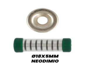 TUBO 10 IMAN Ø18X5MM/8.8 LBS FUERZA, NEODIMIO REDONDO RECUBIERTO DE NIQUEL, MOD.31