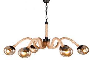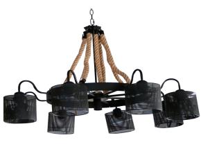 LAMPARA COLG. T/ARAÑA HIERRO FORJ. PINTADO EN NEG C/ROPO/SISAL,E27X6 BOMB LED, NO INCL.39"LARX17"ALT
