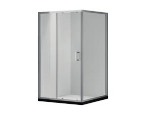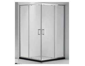 PUERTA DE BAÑO ESQUINERA 1MX1MX1.95M VIDRIO TEMPLADO, CON 2 PUERTAS CORREDIZAS, ACABADO ALUMINIO
